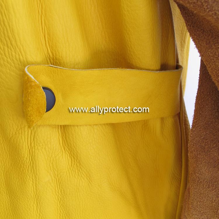 衣身采用柔韌隔熱的牛青皮制成,衣袖由抗火隔熱耐磨的牛二層皮制成;