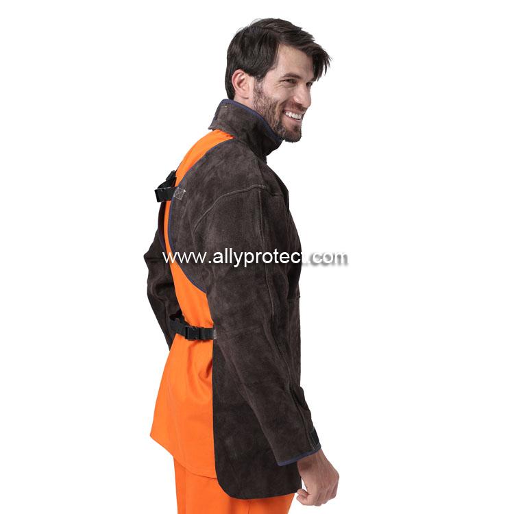- 產(chǎn)品描述: [ AP ]炭啡色牛二層芯皮全皮護(hù)胸立領(lǐng)長(zhǎng)袖圍裙,適于在炎熱氣溫或室內(nèi)焊接使用,背部透氣,不會(huì)感覺太炎熱。