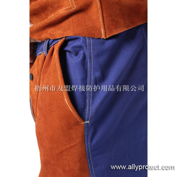 • AP-6062 咖啡色皮配藍(lán)色阻燃布焊褲